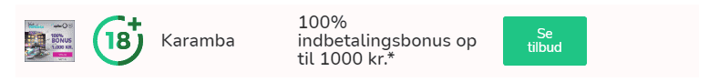 Karamba tilbyder en velkomstbonus til alle nye spillere på 100% af indskuddet op til 1000 kr.