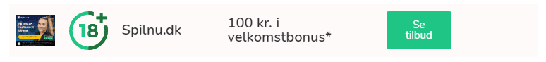 18+ | Regler og vilkår gælder | Nye spillere får 100 kr. i bonus ved indbetaling af min. 100 kr. | 10x gennemspilskrav inden 90 dage | Spil ansvarligt | StopSpillet.dk | Udeluk dig via ROFUS.nu